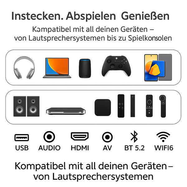 🎥 Kristallklare 4K-Unterstützung – kompatibel mit 4K-Quellen wie Netflix, Prime Video, PS5 und 4K-Sticks.