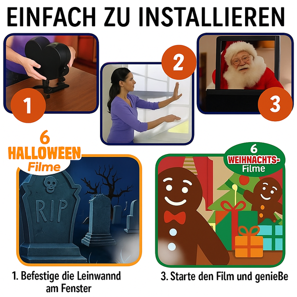 ✔️ 12 Motive in 1 – 6 gruselige Halloween-Bilder und 6 stimmungsvolle Weihnachtsprojektionen