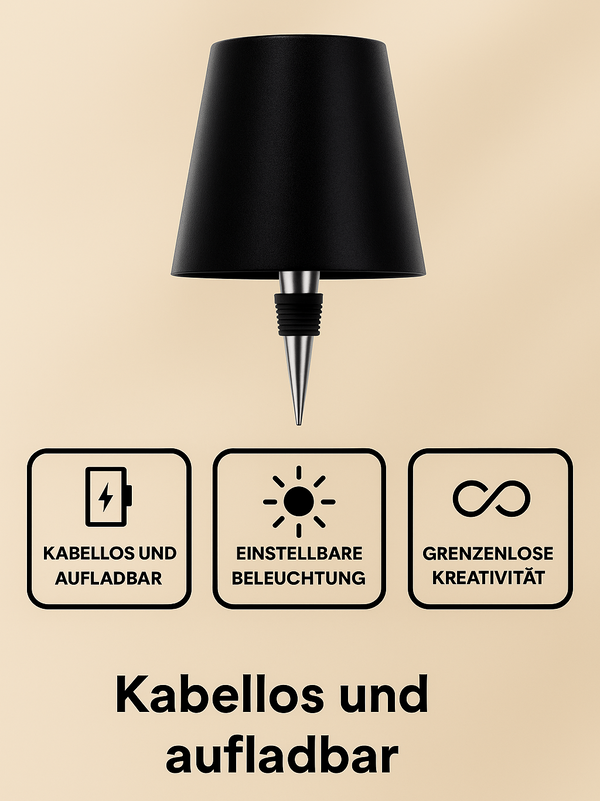 VinoGlow™ verwandelt alltägliche Flaschen in leuchtende Kunstwerke, die jedem Raum eine warme, einladende Stimmung verleihen. Einfach und flexibel einsetzbar!
